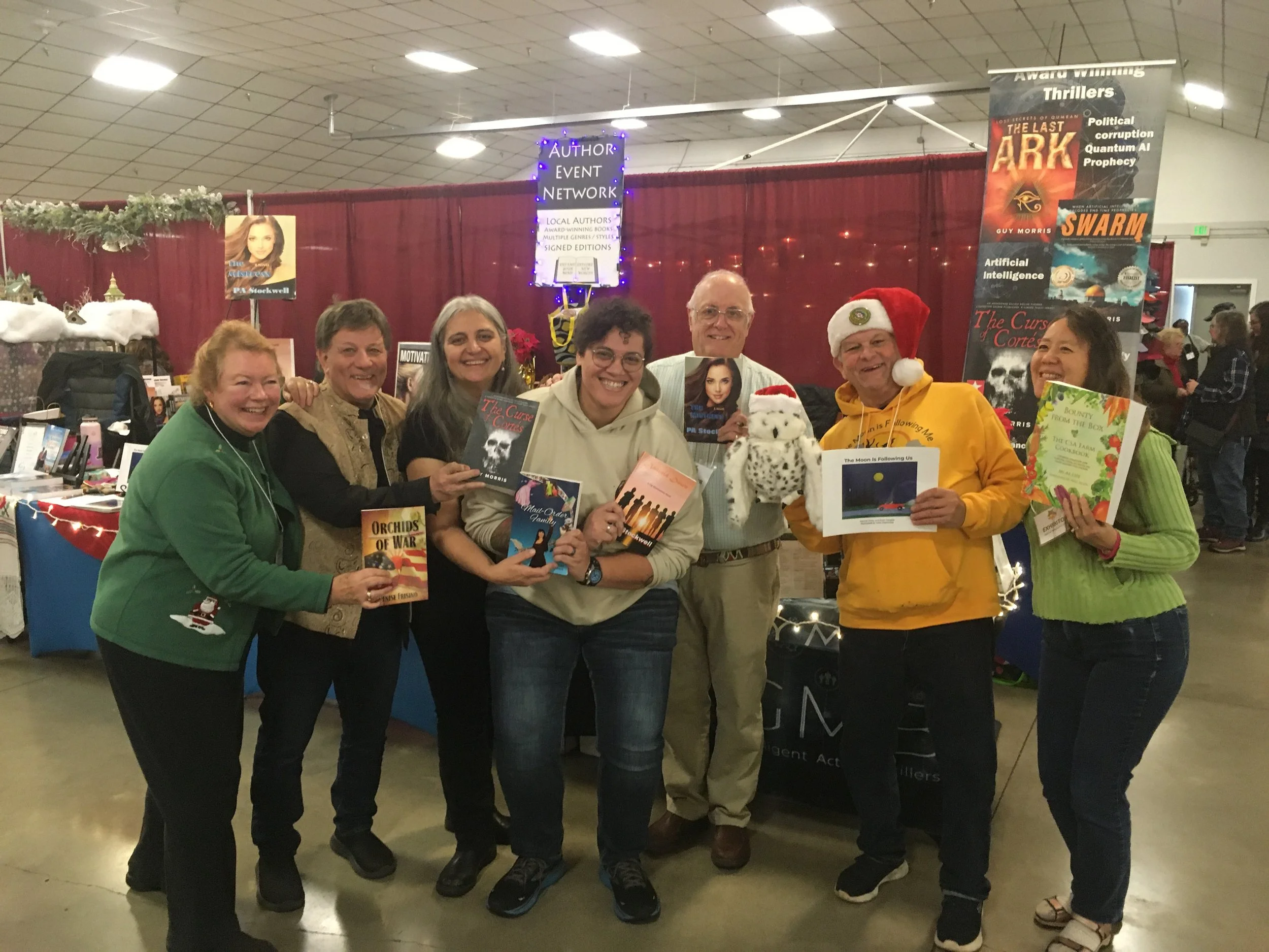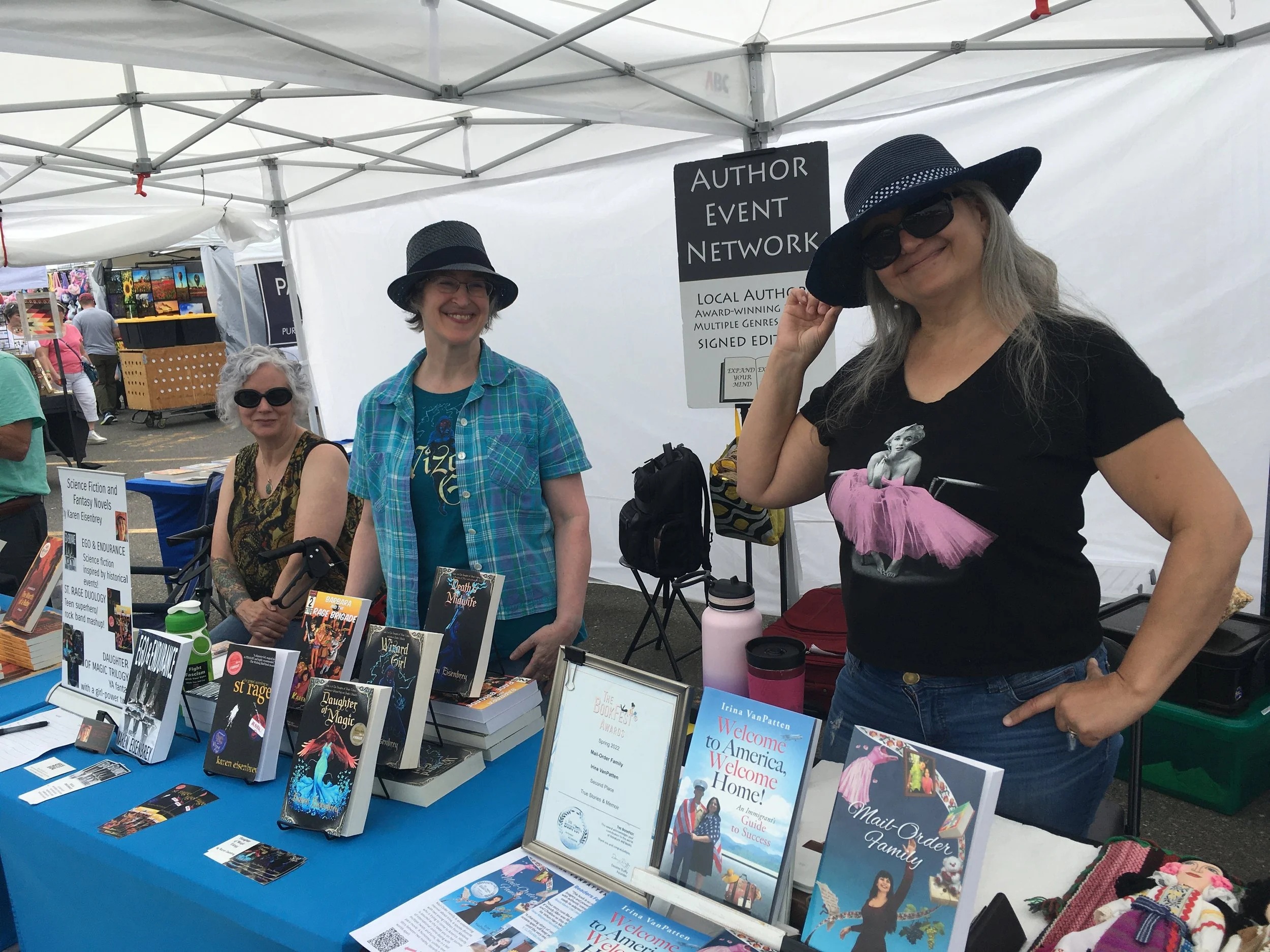 AEN manages all equipment, tents, tables, covers, signage and other shared. Authors bring only their own displays and books.